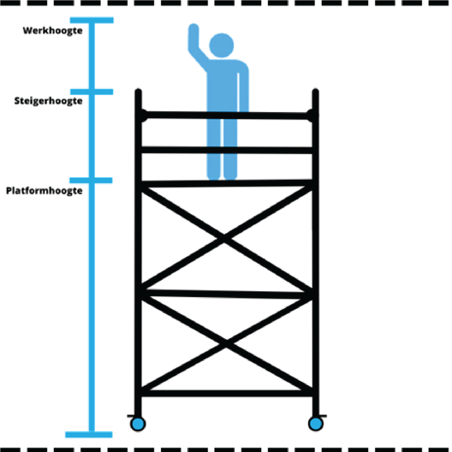 De werkhoogte is de hoogte waarop je wilt werken met de rolsteiger.